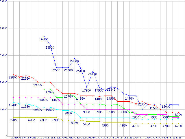 PC2-6400(DDR2-800) DDR2 SDRAM DIMMの最安値推移