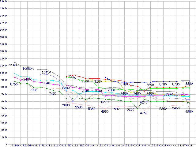 | CPU主要製品(最安値1万円未満)の最安値推移 | | | (2008年10月10日~2009年4月24日) |