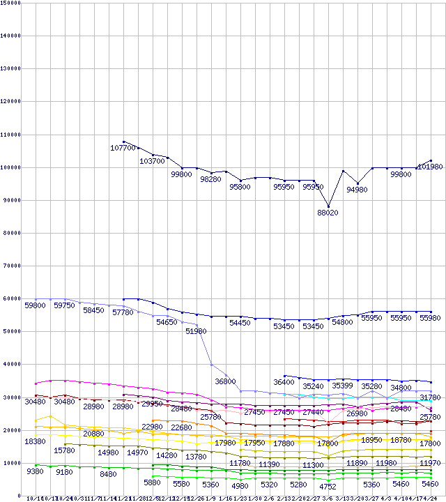 ※製品名をクリックすると個別のグラフを表示します ※点線部は販売店が確認できなかった、または調査データがないことを示します |