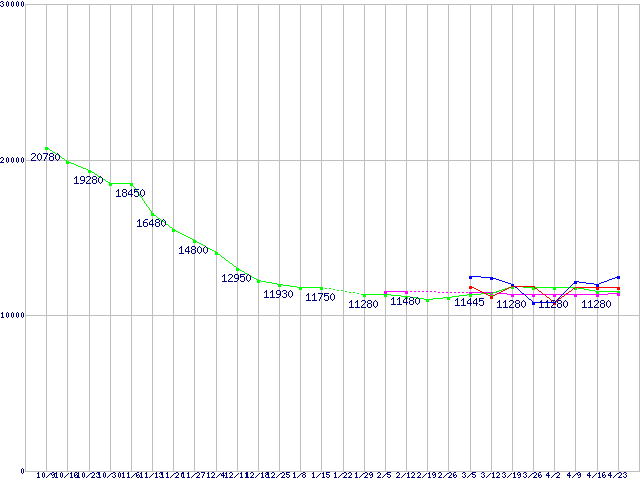 HDD/SSD主要製品(最安値1万円未満)の最安値推移