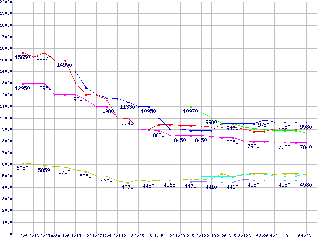 ※点線部は販売店が確認できなかった、または調査データがないことを示します