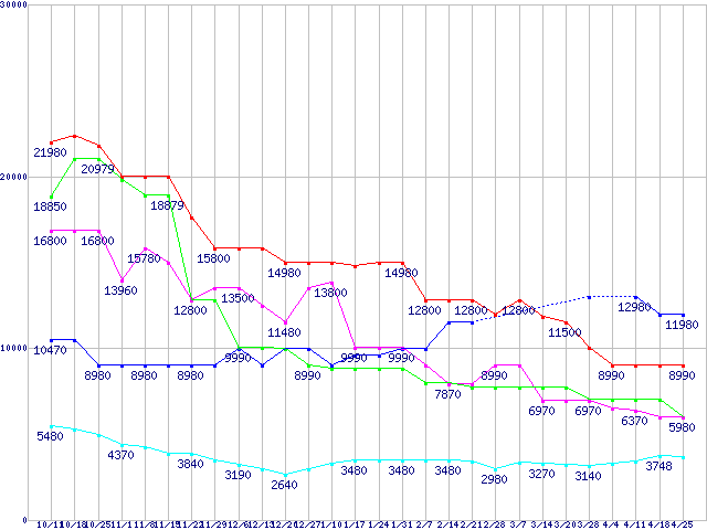 メモリ主要製品の最安値推移