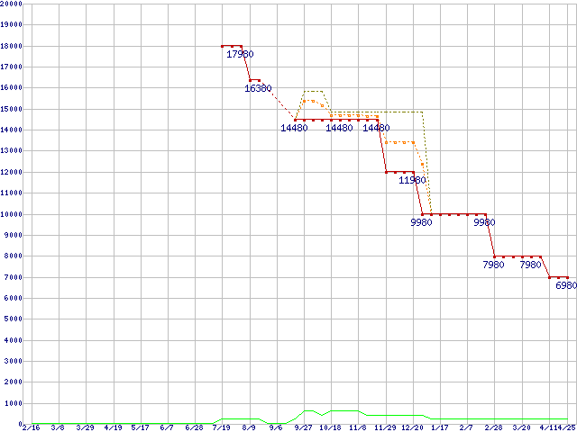 PC3-12800(DDR3-1600) DDR3 SDRAM DIMMの最安値推移