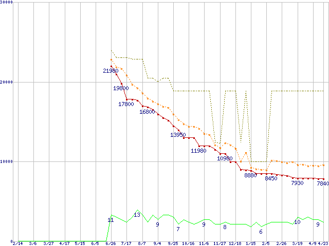 | HM500LI (500GB,8MB)の価格推移 | | | (2008年2月14日~2009年4月23日) |