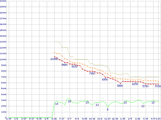 | WD3200BEVT (320GB,8MB)の価格推移 | | | (2008年2月14日~2009年4月23日) |