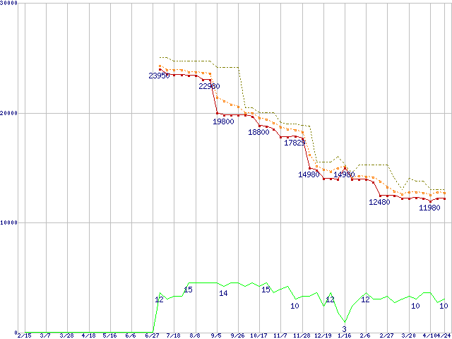 | Phenom X4 9350e (2.0GHz,L2 512KB×4,L3 2MB)の価格推移 | | | (2008年2月15日~2009年4月24日) |