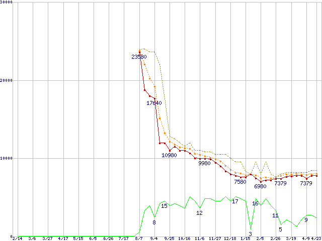 | ST31000333AS (1TB,32MB)の価格推移 | | | (2008年2月14日~2009年4月23日) |