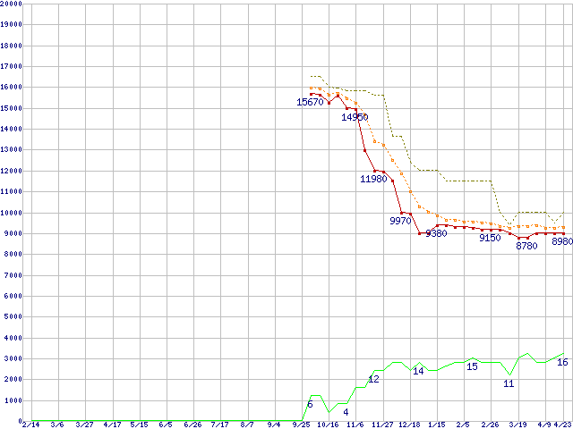 | WD5000BEVT (500GB,8MB)の価格推移 | | | (2008年2月14日~2009年4月23日) |