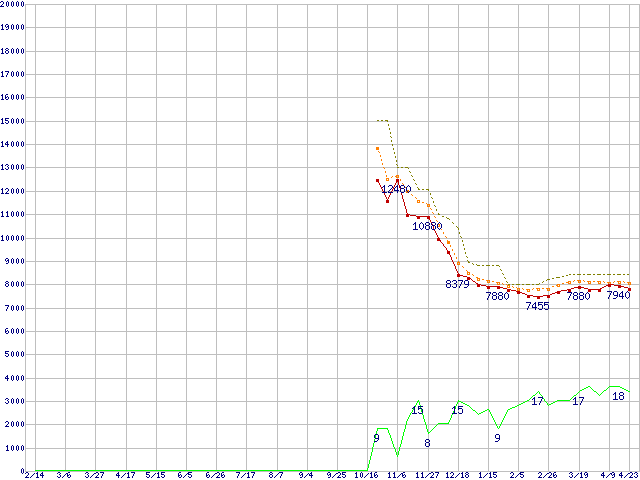 | HDT721010SLA360 (1TB,16MB)の価格推移 | | | (2008年2月14日~2009年4月23日) |