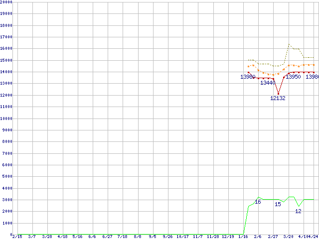 | Core 2 Duo E7500 (2.93GHz,L2 3MB)の価格推移 | | | (2008年2月15日~2009年4月24日) |