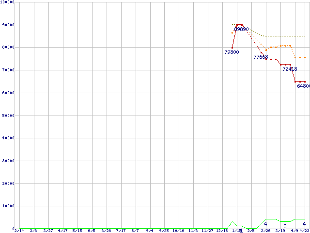 | PE256GS25SSDR (256GB,MLC)の価格推移 | | | (2008年2月14日~2009年4月23日) |