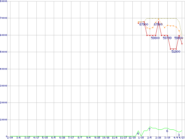 | PF25S256GSSDV2 (256GB,MLC)の価格推移 | | | (2008年2月14日~2009年4月23日) |