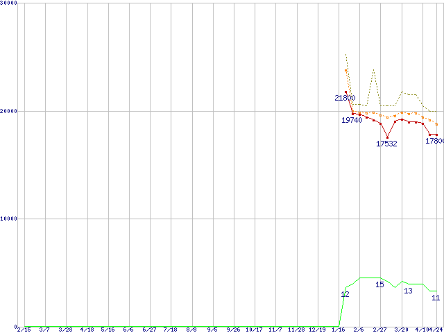 | Phenom II X4 920 (2.8GHz,L2 512KB×4,L3 6MB)の価格推移 | | | (2008年2月15日~2009年4月24日) |