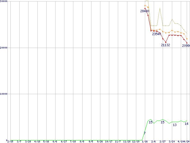 | Phenom II X4 940 Black Edition (3.0GHz,L2 512KB×4,L3 6MB)の価格推移 | | | (2008年2月15日~2009年4月24日) |