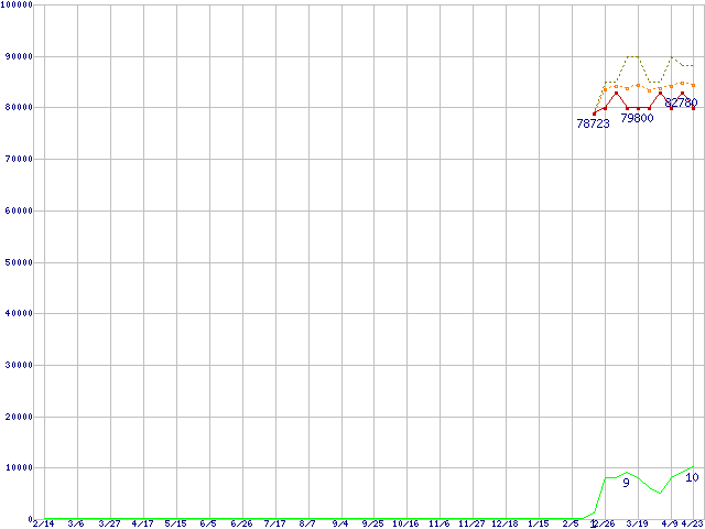 | SSDSA2SH064G1C5 (64GB,SLC)の価格推移 | | | (2008年2月14日~2009年4月23日) |