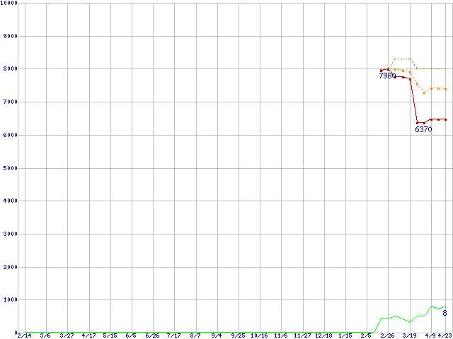 | ST3750528AS (750GB,32MB)の価格推移 | | | (2008年2月14日~2009年4月23日) |