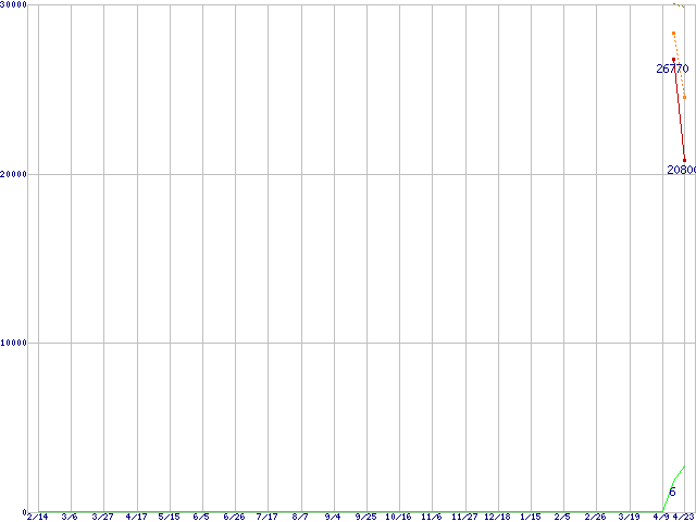 | MMCRE64G5MXP-0VB (64GB,128MB,MLC)の価格推移 | | | (2008年2月14日~2009年4月23日) |
