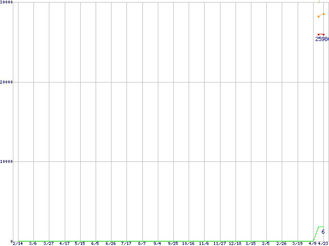 | PF25S64GSSDV3 (64GB,64MB,MLC)の価格推移 | | | (2008年2月14日~2009年4月23日) |
