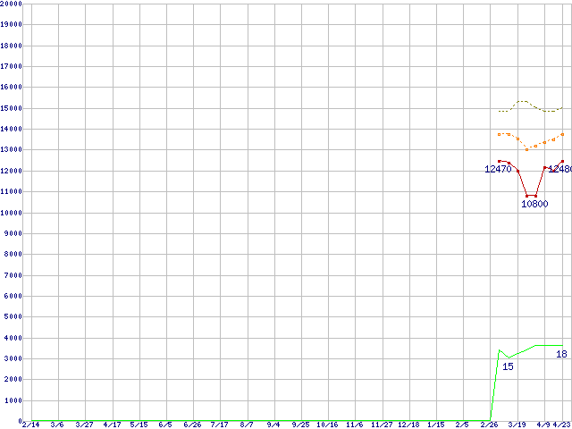 ※このグラフは過去のデータも税率5%相当に調整した税込み相当額のグラフです。 税率変更や、総額表示方式導入(2004年4月)の影響は除いています。 | | | ●凡例 | 最安値 (点線部は販売店未確認 または未調査) | 平均値 | 最高値 | ショップ数 |