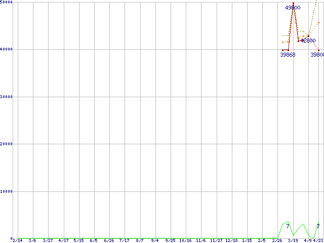 | OCZSSD2-1VTX120G (120GB,64MB,MLC)の価格推移 | | | (2008年2月14日~2009年4月23日) |