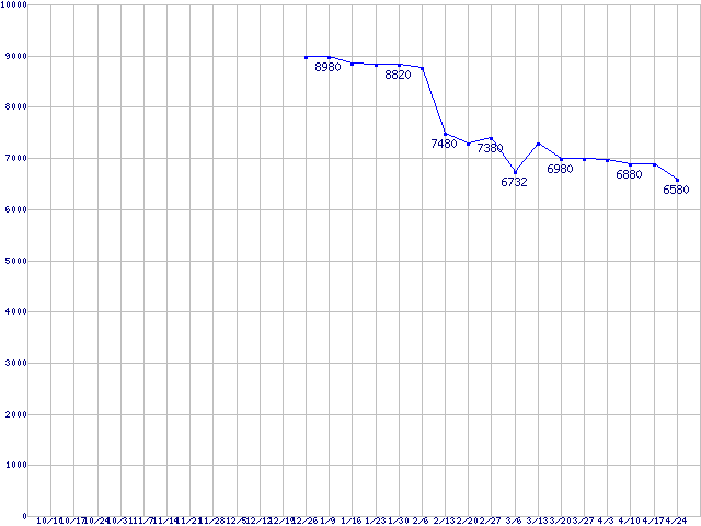 | Socket AM2 (HyperTransport,Dual Core,L3 2MB,TDP 95W)の最安値推移 | | | (2008年10月10日~2009年4月24日) |