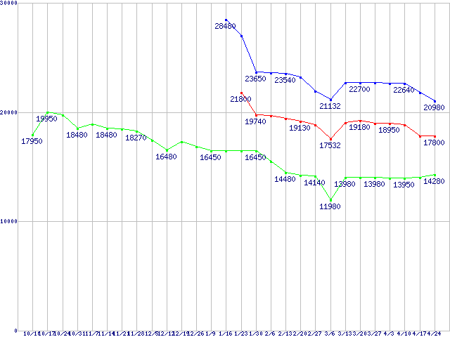 Socket AM2 (HyperTransport 3.0,Quad Core)の最安値推移