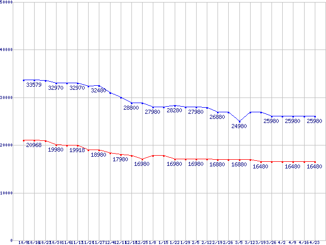 WD VelociRaptor (10000rpm,3Gb/s,16MB)の最安値推移