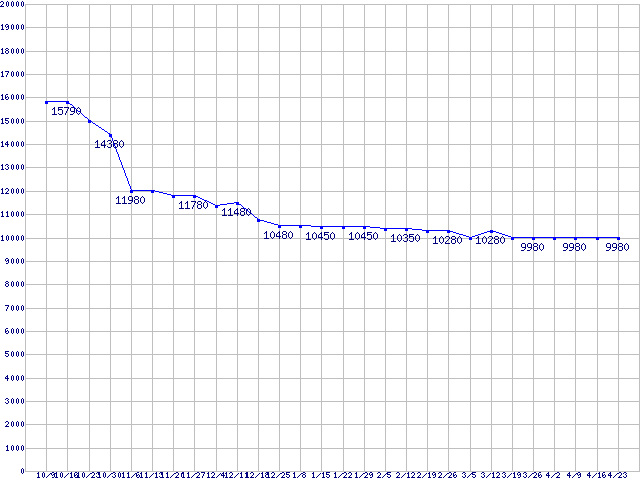 WD VelociRaptor (10000rpm,3Gb/s,16MB)の最安値推移