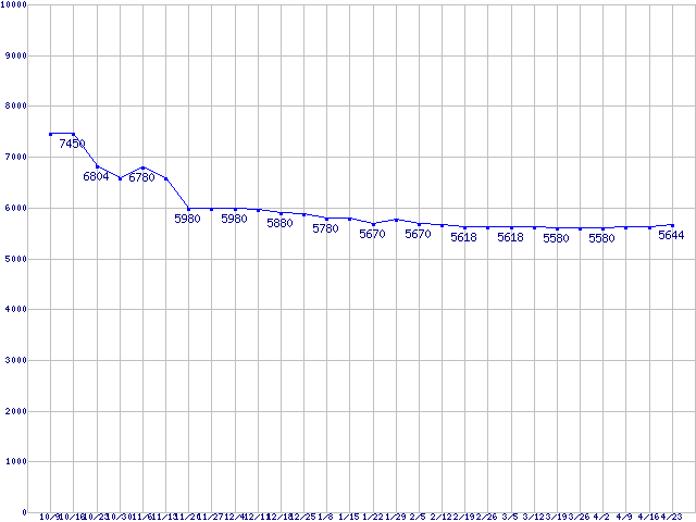 WD Caviar Blue (7200rpm,3Gb/s,16MB)の最安値推移
