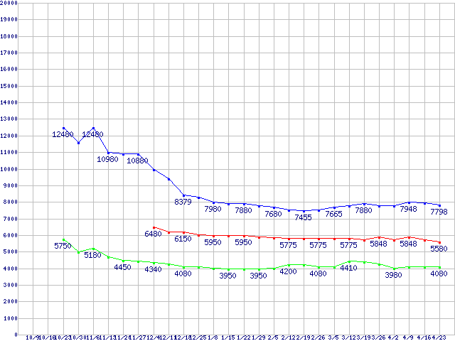 Deskstar P7K500 (7200rpm,3Gb/s)の最安値推移
