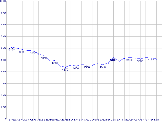 Deskstar P7K500 (7200rpm,3Gb/s)の最安値推移
