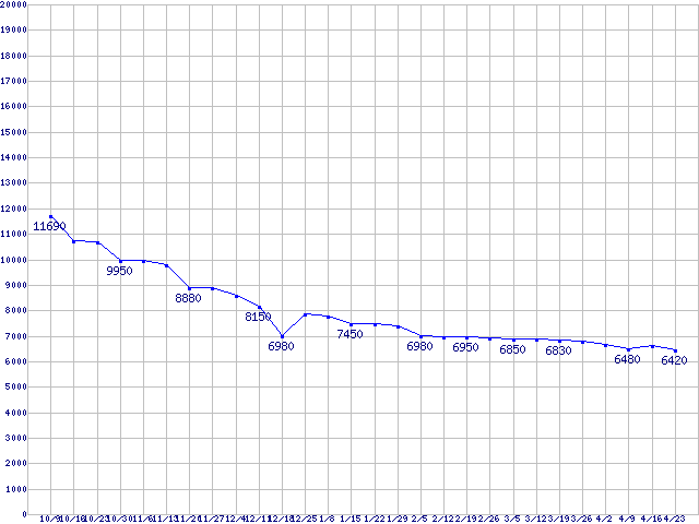 Deskstar P7K500 (7200rpm,3Gb/s)の最安値推移