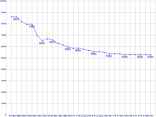 Travelstar 5K500.B (5400rpm,3Gb/s,2.5インチ)の最安値推移