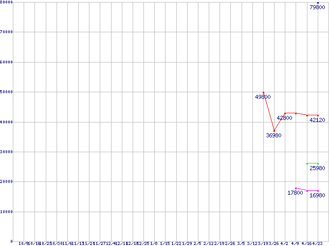| G-MONSTER V3 (SSD,2.5インチ,リード200MB/s・ライト160MB/s)の最安値推移 | | | (2008年10月9日~2009年4月23日) |