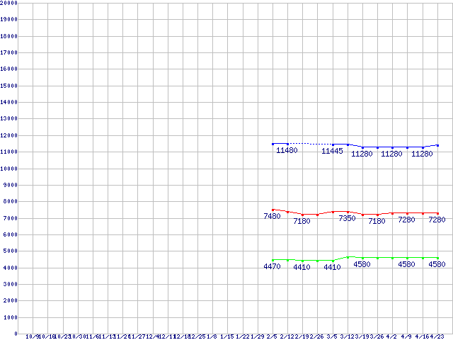 WD Scorpio Blue (5400rpm,3Gb/s,2.5インチ)の最安値推移