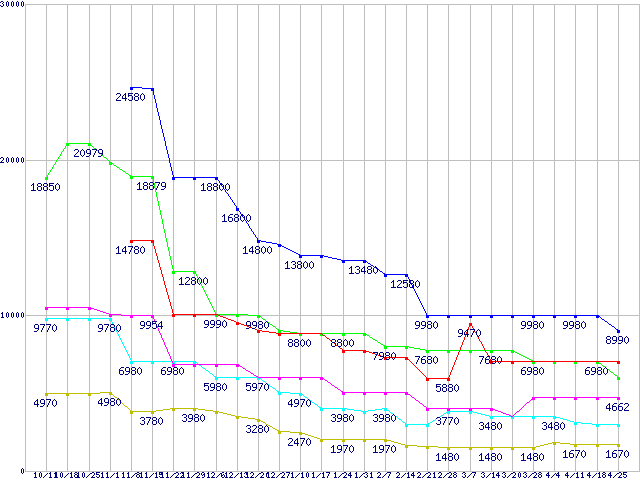 PC3-12800(DDR3-1600) DDR3 SDRAM DIMMの最安値推移
