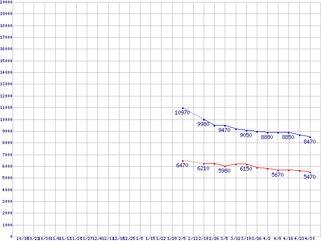 Travelstar 5K500.B (5400rpm,3Gb/s,2.5インチ)の最安値推移
