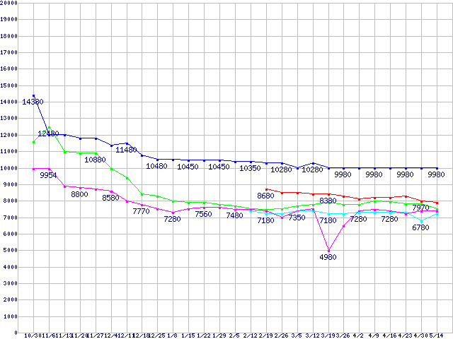 HDD 750GB~1TB未満の最安値推移