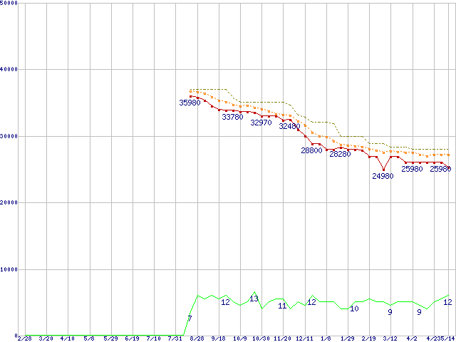 WD3000HLFS (300.0GB)の価格推移↑前グラフ↓次グラフ(2008年2月28日〜2009年5月14日)※このグラフは過去のデータも税率5%相当に調整した税込み相当額のグラフです。 税率変更や、総額表示方式導入(2004年4月)の影響は除いています。●関連グラフHDD/SSD主要製品の最安値推移HDD/SSD主要製品(最安値2万円以上)の最安値推移HDD 300〜400GB未満の最安値推移WD VelociRaptor (10000rpm,3Gb/s,16MB)の最安値推移●凡例最安値(点線部は販売店未確認または未調査)平均値最高値ショップ数