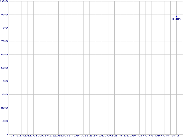 | Corsair Solid State Disk Drives (SSD,3Gb/s,2.5インチ,リード220MB/s・ライト200MB/s)の最安値推移 | | | (2008年10月30日~2009年5月14日) |