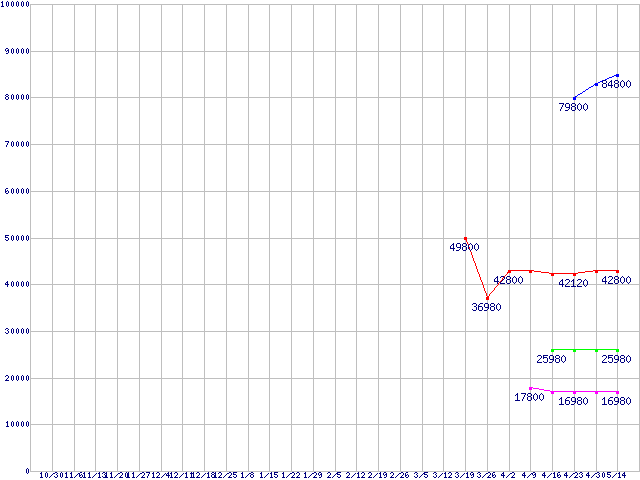 | G-MONSTER V3 (SSD,2.5インチ,リード200MB/s・ライト160MB/s)の最安値推移 | | | (2008年10月30日~2009年5月14日) |