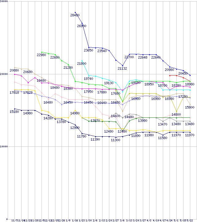 | CPU主要製品(最安値1万円〜2万円未満)の最安値推移 |