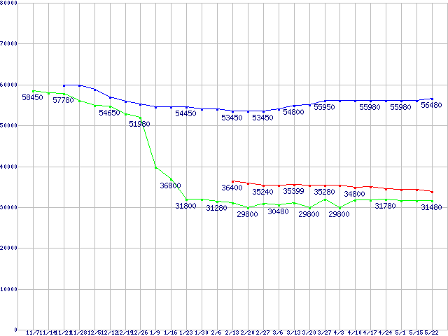 | CPU主要製品(最安値3万円〜6万円未満)の最安値推移 |