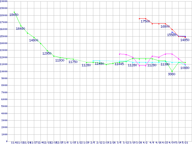 | ※製品名をクリックすると個別のグラフを表示します ※点線部は販売店が確認できなかった、または調査データがないことを示します | |