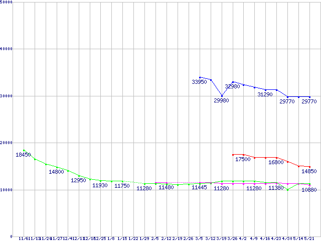 | ※製品名をクリックすると個別のグラフを表示します ※点線部は販売店が確認できなかった、または調査データがないことを示します | |