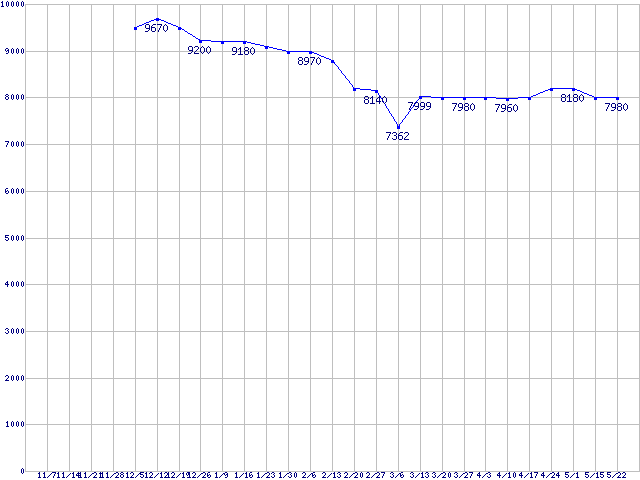 | Socket AM2 (HyperTransport 3.0,Triple Core,TDP 65W)の最安値推移 |
