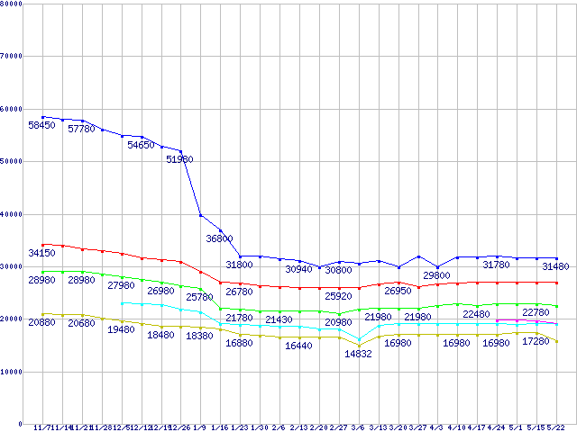 | LGA775 (FSB 1333MHz,Quad Core)の最安値推移 |