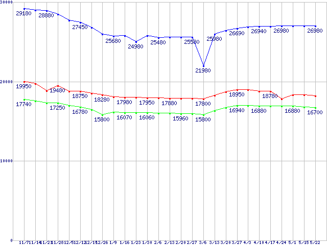 | ※製品名をクリックすると個別のグラフを表示します ※点線部は販売店が確認できなかった、または調査データがないことを示します | |