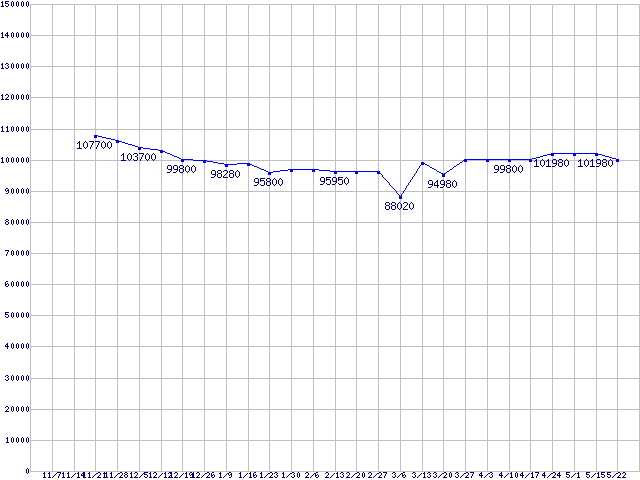 | LGA1366 (QPI 6.4GT/s,L3キャッシュ8MB,Quad Core,Hyper-Threading)の最安値推移 |
