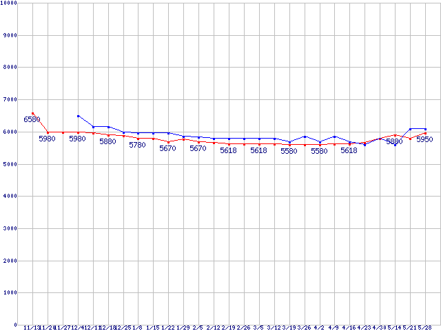 | ※製品名をクリックすると個別のグラフを表示します ※点線部は販売店が確認できなかった、または調査データがないことを示します |